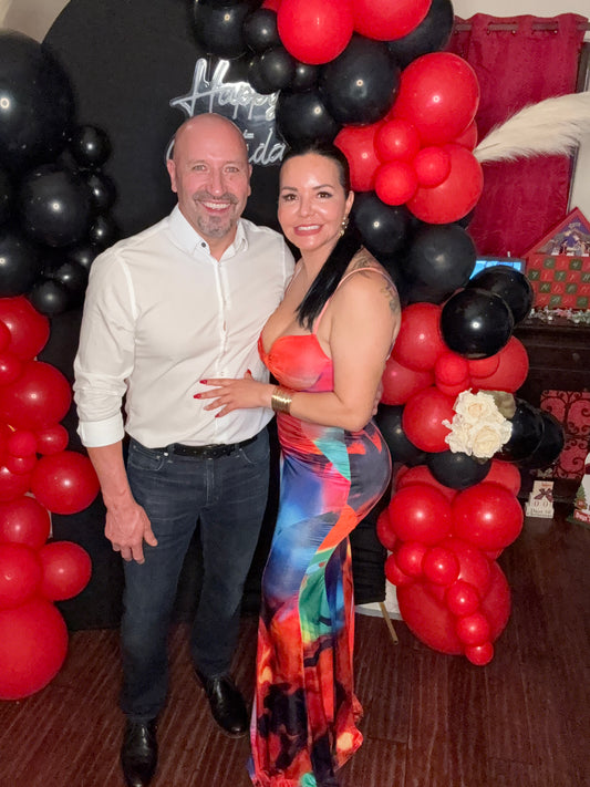 Red and Colorful Fitted Dress