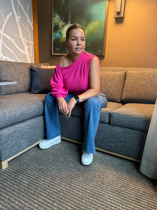 Pink and White Blouse.